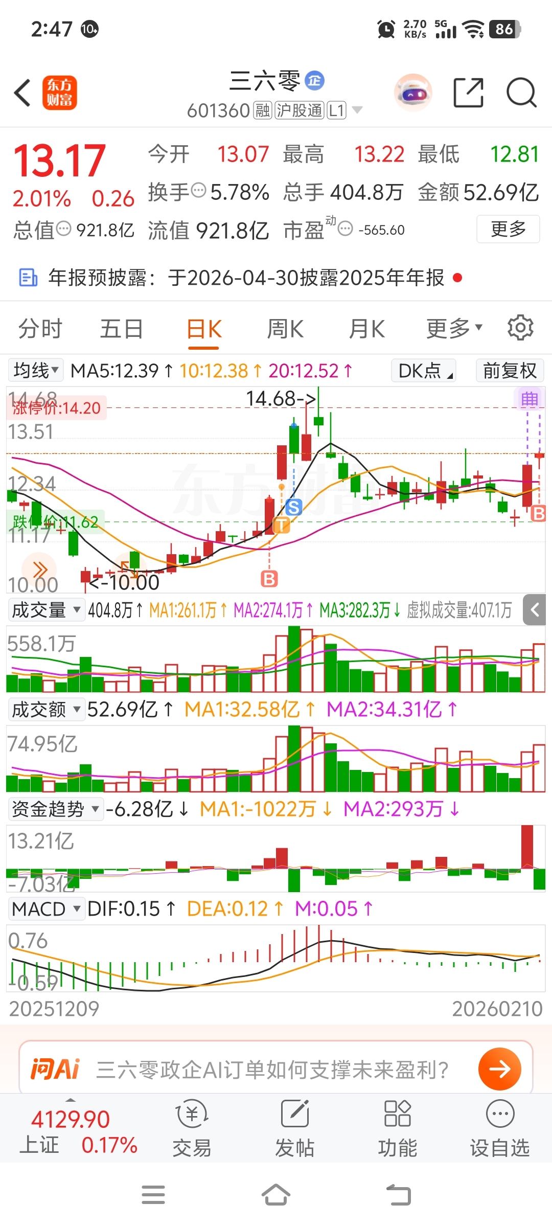 $三六零(SH601360)$ 三六零上次有利润,希望这次最近也能有利润。