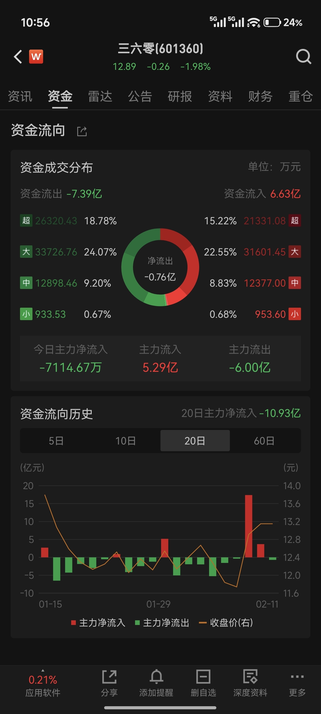 $三六零(SH601360)$ wind看成交量准吗?这个软件显示他主力也没怎么出……