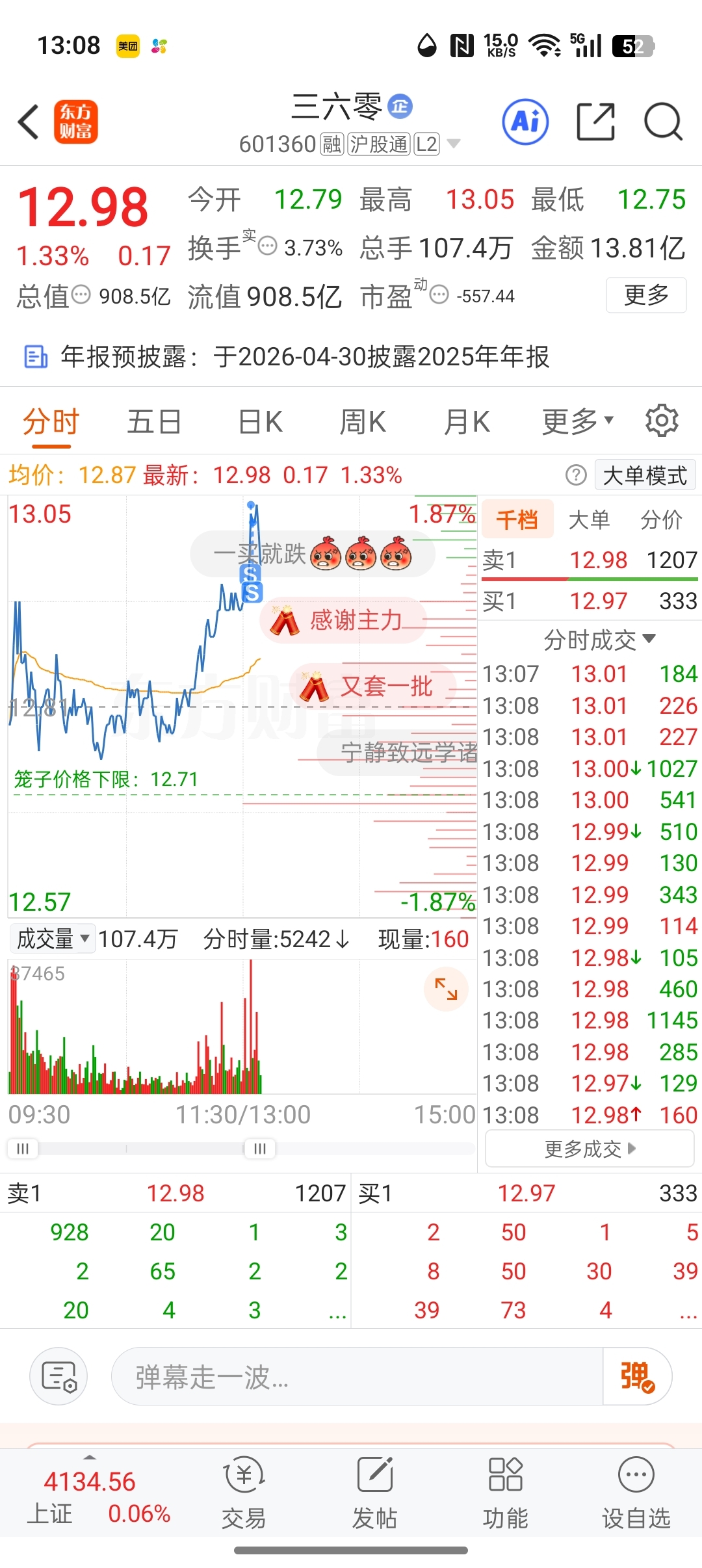 $三六零(SH601360)$ 卖飞了