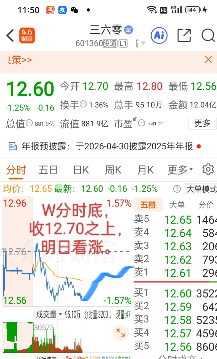 $三六零(SH601360)$ 符合如下走势,明日看涨