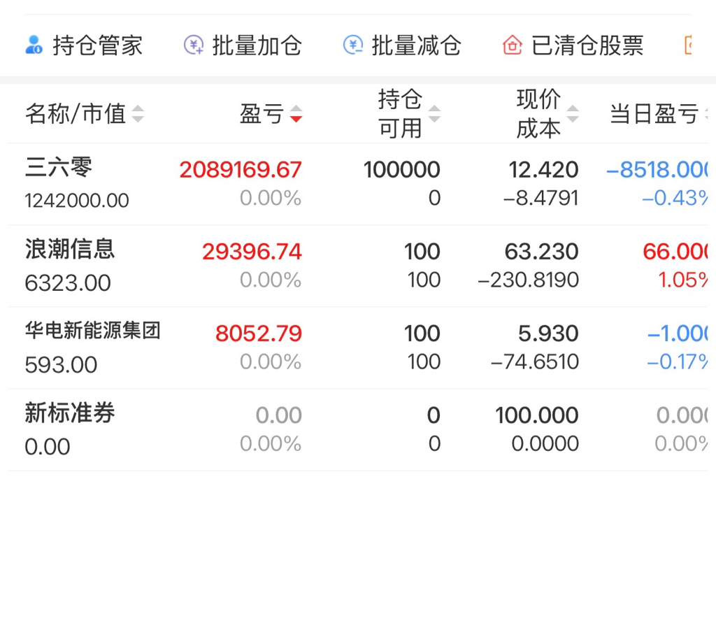$三六零(SH601360)$ 开年连跌三天,吃相太难看,成本负数了,随便你吧