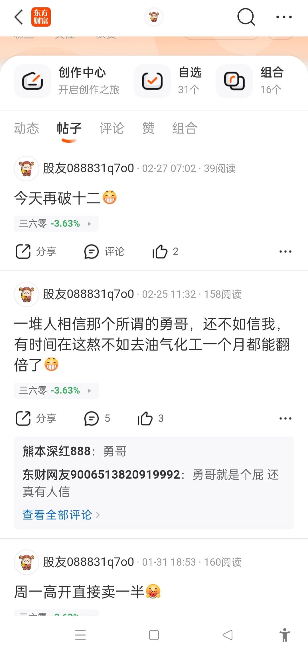 温馨提示: 1.根据《证券法》规定,禁止编造、传播虚假信息或者误导性信息,扰乱证券市场;2.用户在本社区发表的所有资料、言论等仅代表个人观点,与本网站立场无关,不对您构成任何投资建议。用户应基于自己的独立判断,自行决定证券投资并承担相应风险。《东方财富社区管理规定》