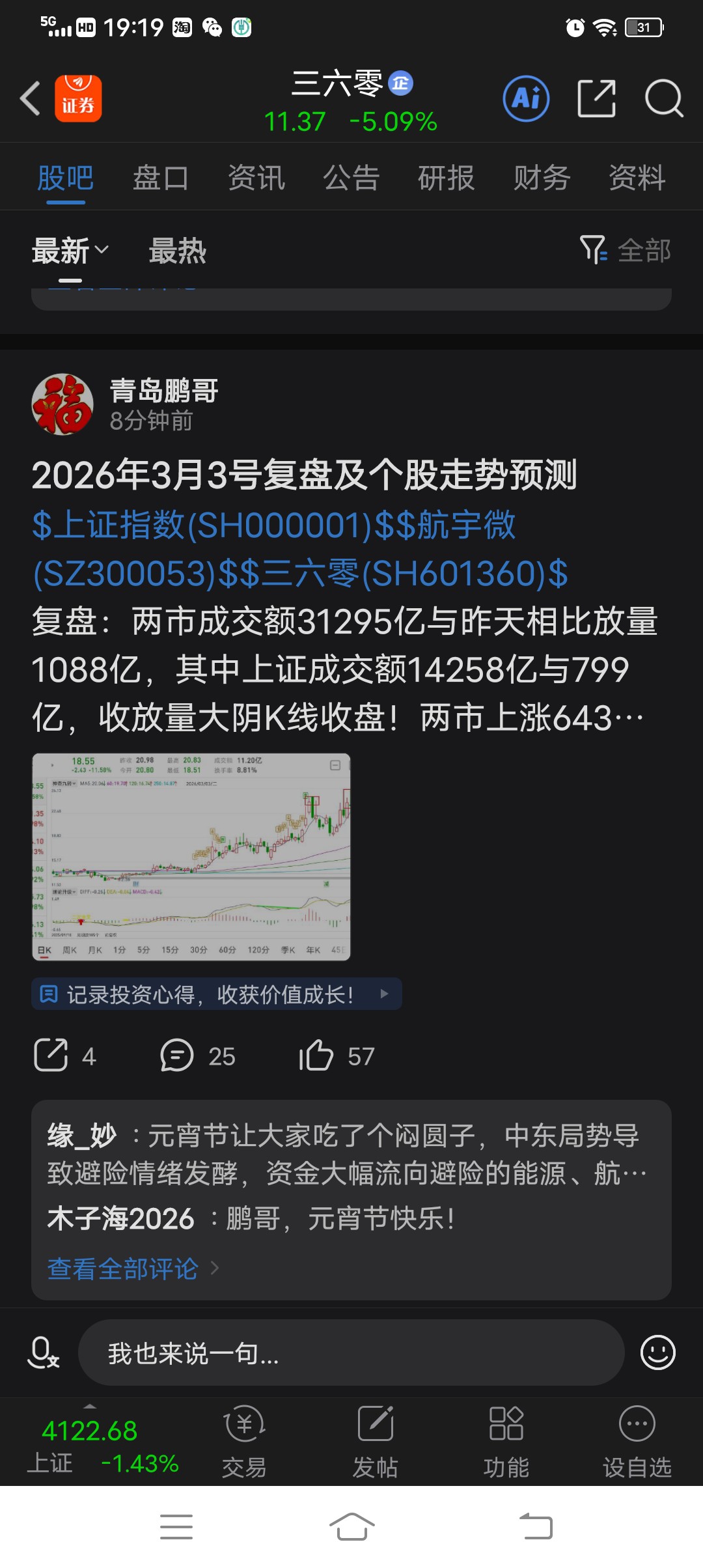 $三六零(SH601360)$ 这个没过年的几分钟发一次,股票能涨吗