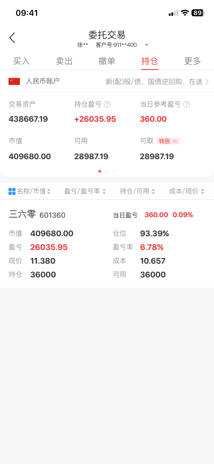 $三六零(SH601360)$ 下来啊我仓位最后一下还没打满,开盘挂了价格没吃进去啊,主力好够啊