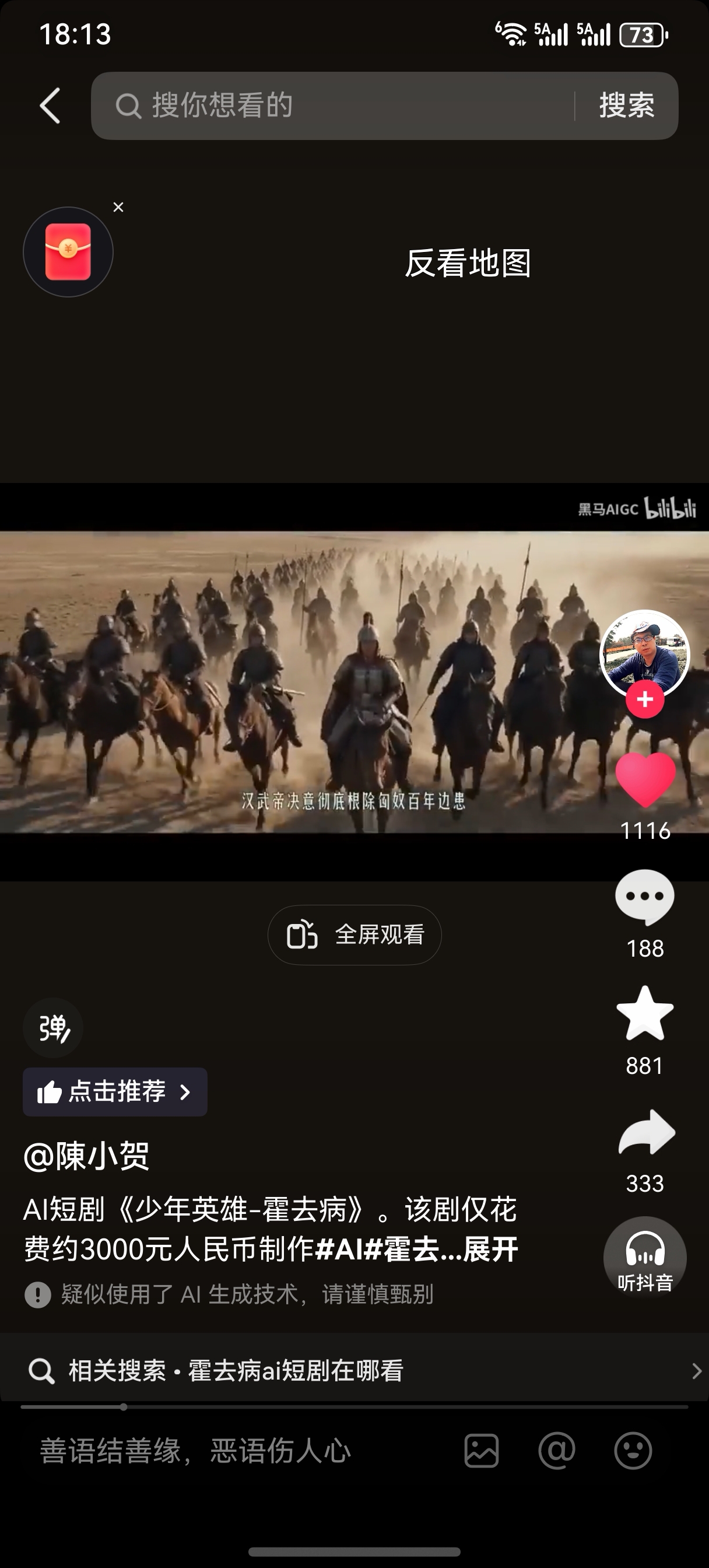 $三六零(SH601360)$ 刚刚看了,3000块钱的制作成本,拍出如此效果,确实震撼!