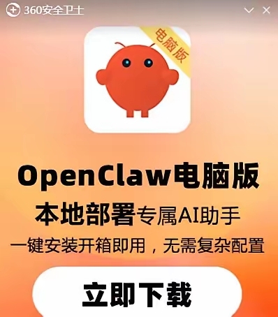 这两天很火的养龙虾,刚刚看见电脑360弹窗广告能一键安装,就抱着试试的态度下载了