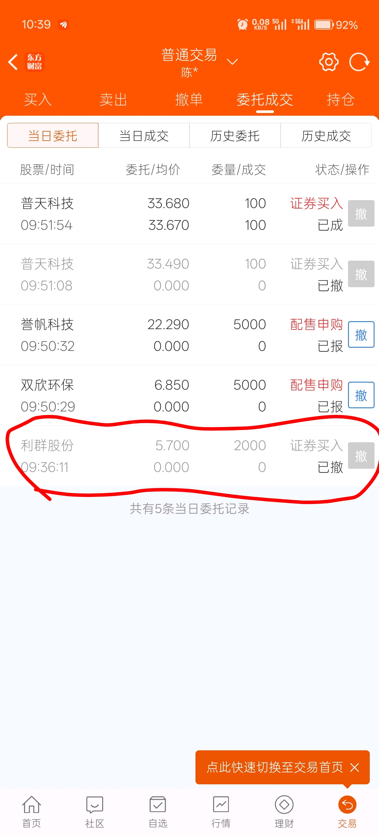 $利群股份(SH601366)$ 水下6个点挂单,被我撤销了