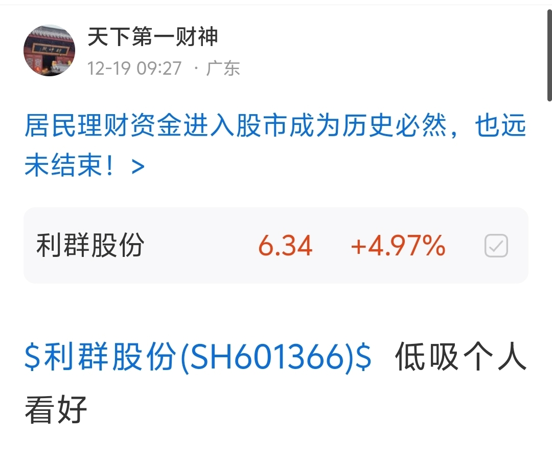 $利群股份(SH601366)$ 抄底成功
