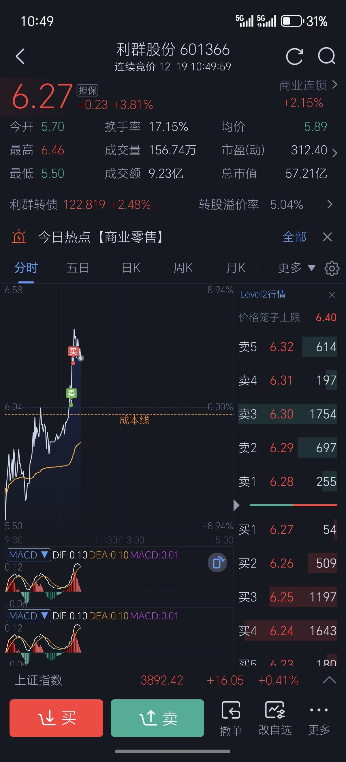 $利群股份(SH601366)$ 今天抄底的人是勇士,佩服我拿不住又追进去了