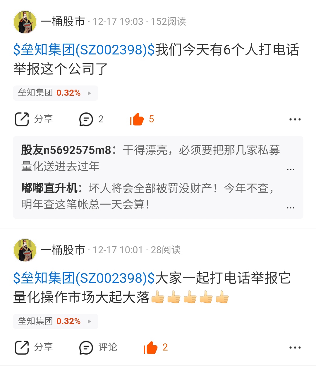 在垒知集团被套17号几个人一起打电话举报的18一直涨到今天涨了15个点!!!!!