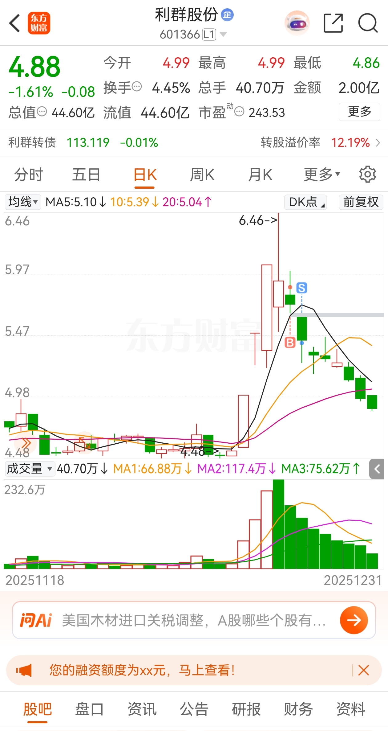 $利群股份(SH601366)$ 笨鸟先飞,差点被套死。