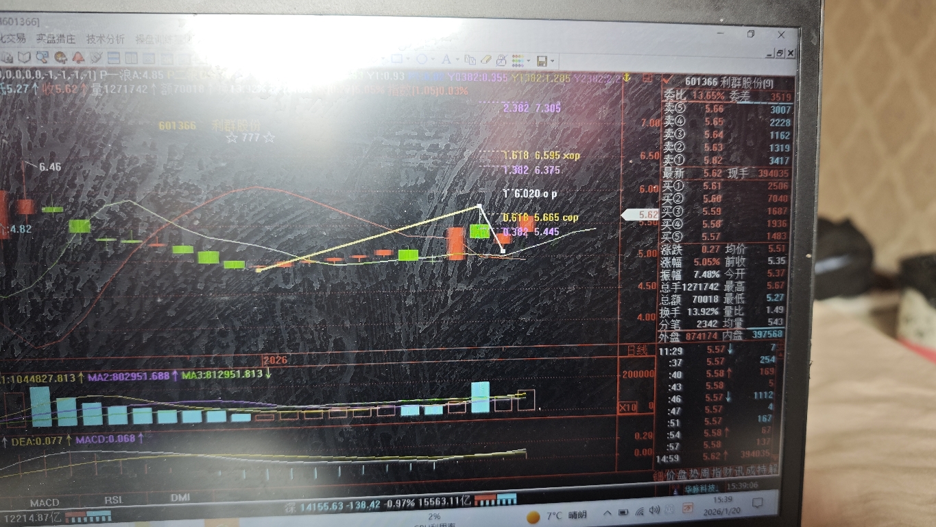 到达cop位,减仓0.618位是5.665.提前挂单5.66。今日成交,寻找低点
