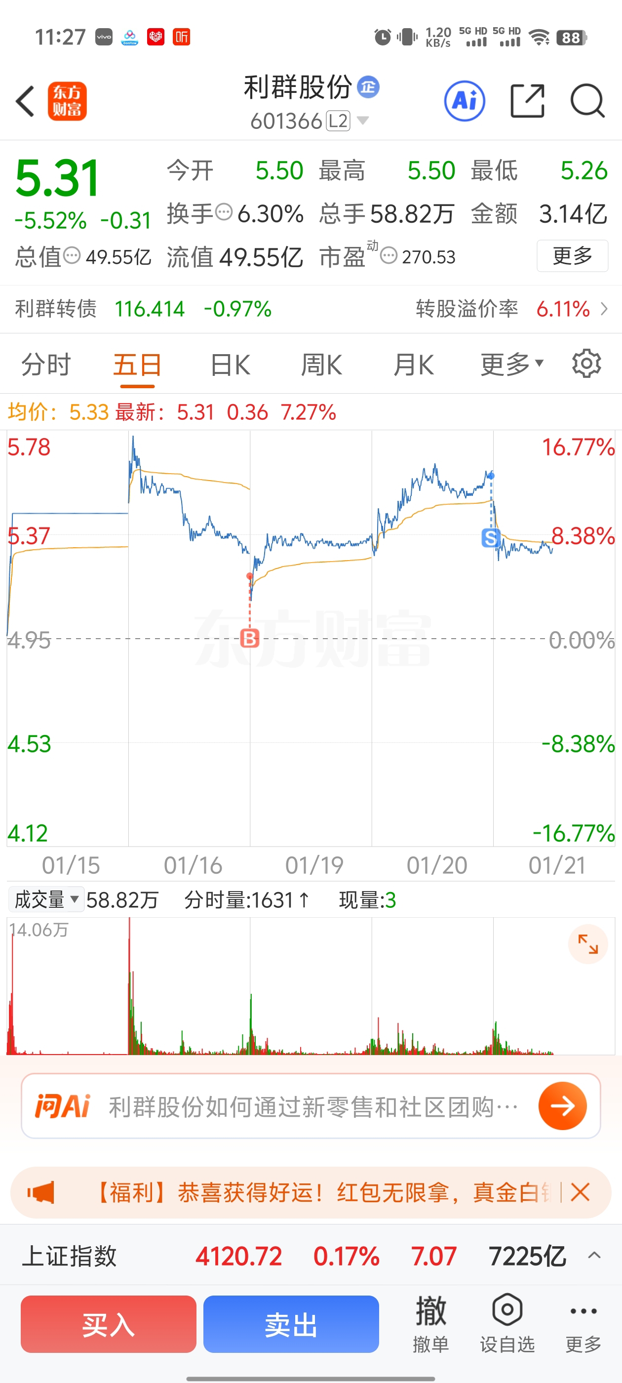 $利群股份(SH601366)$ 这股真不行,还好跑路的早