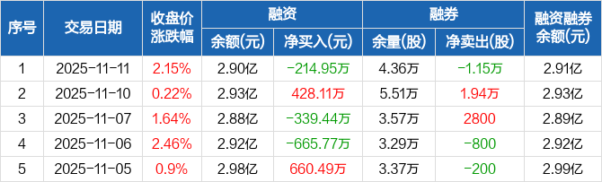 陕鼓动力:融资净偿还214.95万元,融资余额2.9亿元(11-11)