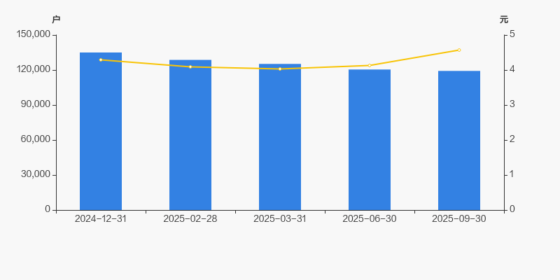 自2024年12月31日以来,公司股东户数连续4期下降,截至目前减幅为11.70%。2024年12月31日至2025年9月30日区间股价上涨6.48%。