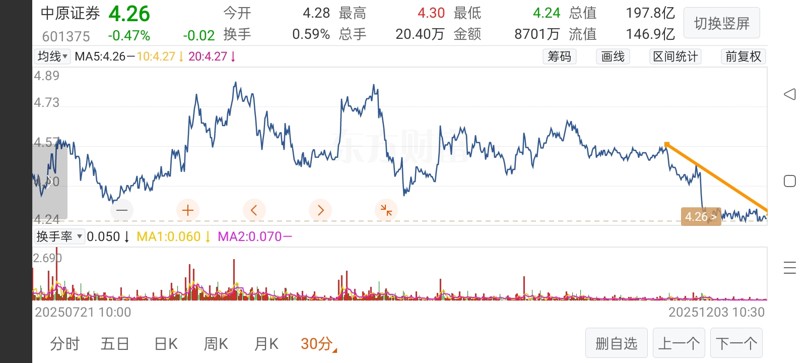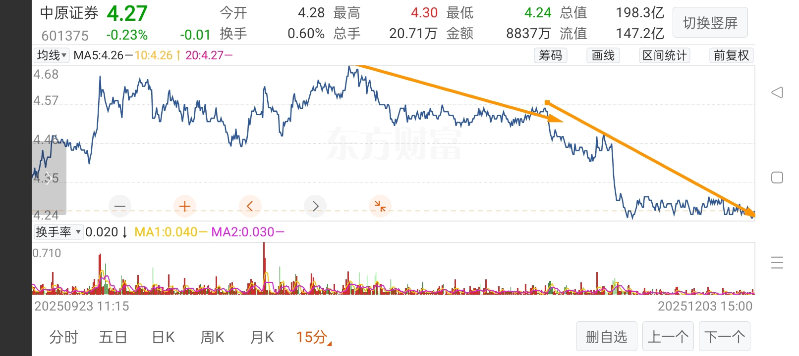 变盘点位,如今晚收盘4.28向上可能性大,如收盘4.26向下可能性大
