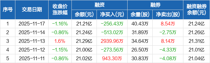 兴业证券:融资净偿还256.43万元,融资余额21.21亿元(11-17)