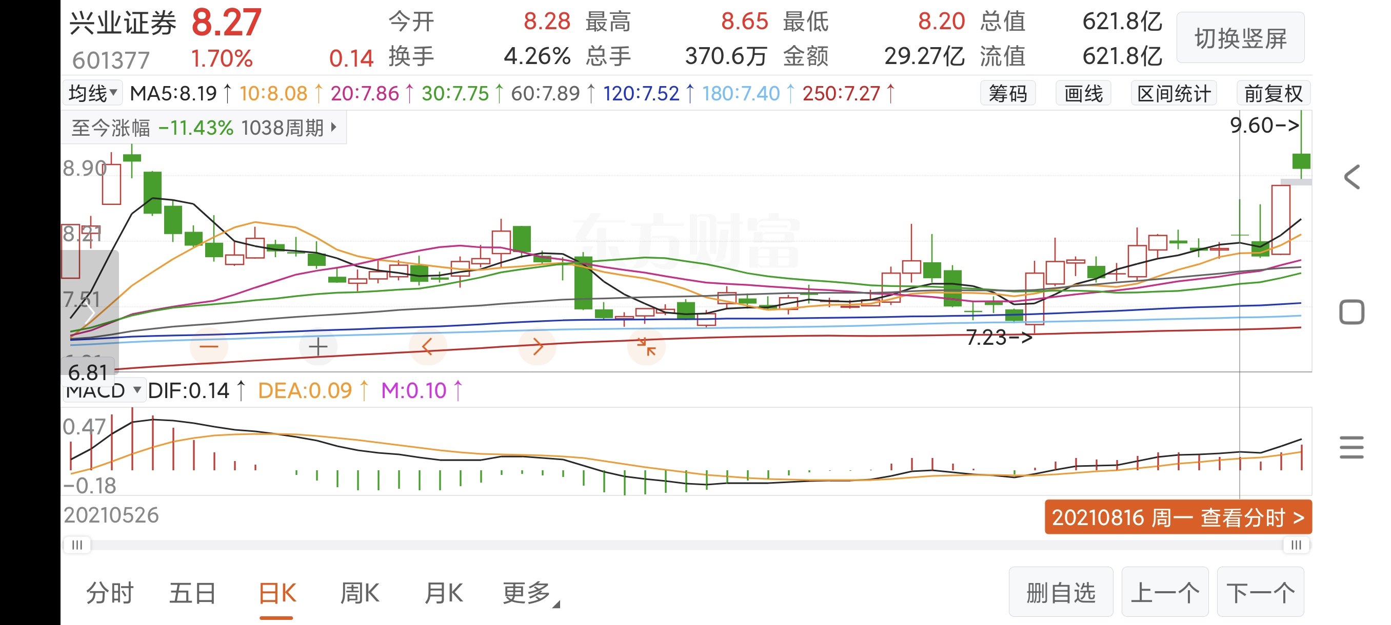 $兴业证券(SH601377)$ 阴柱贯穿五日十日线