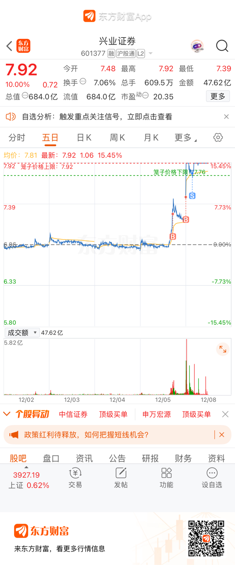 $兴业证券(SH601377)$ 出货量太大了,只能赚自己认知的钱