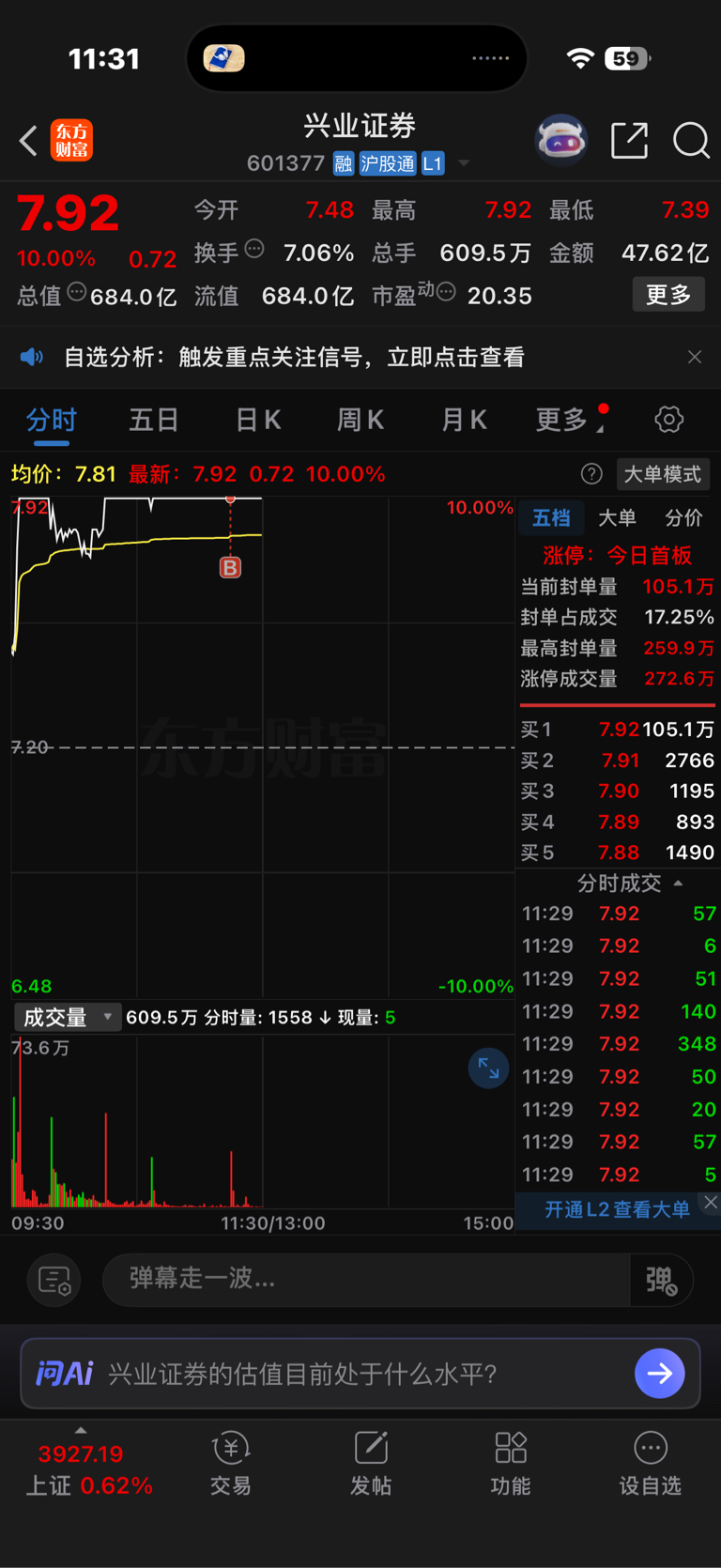12月8日半仓打板兴业证券,主打一个跟指数共进退~另半仓排队中国一重