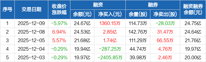 兴业证券:融资余额24.67亿元,创近一年新高(12-09)