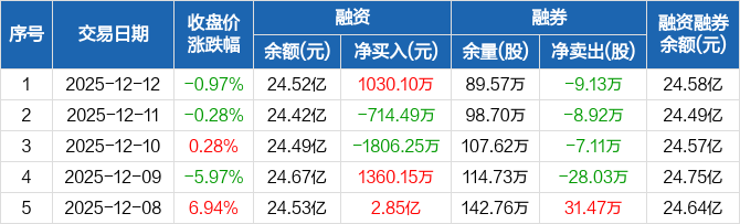 兴业证券:融资净买入1030.1万元,融资余额24.52亿元(12-12)