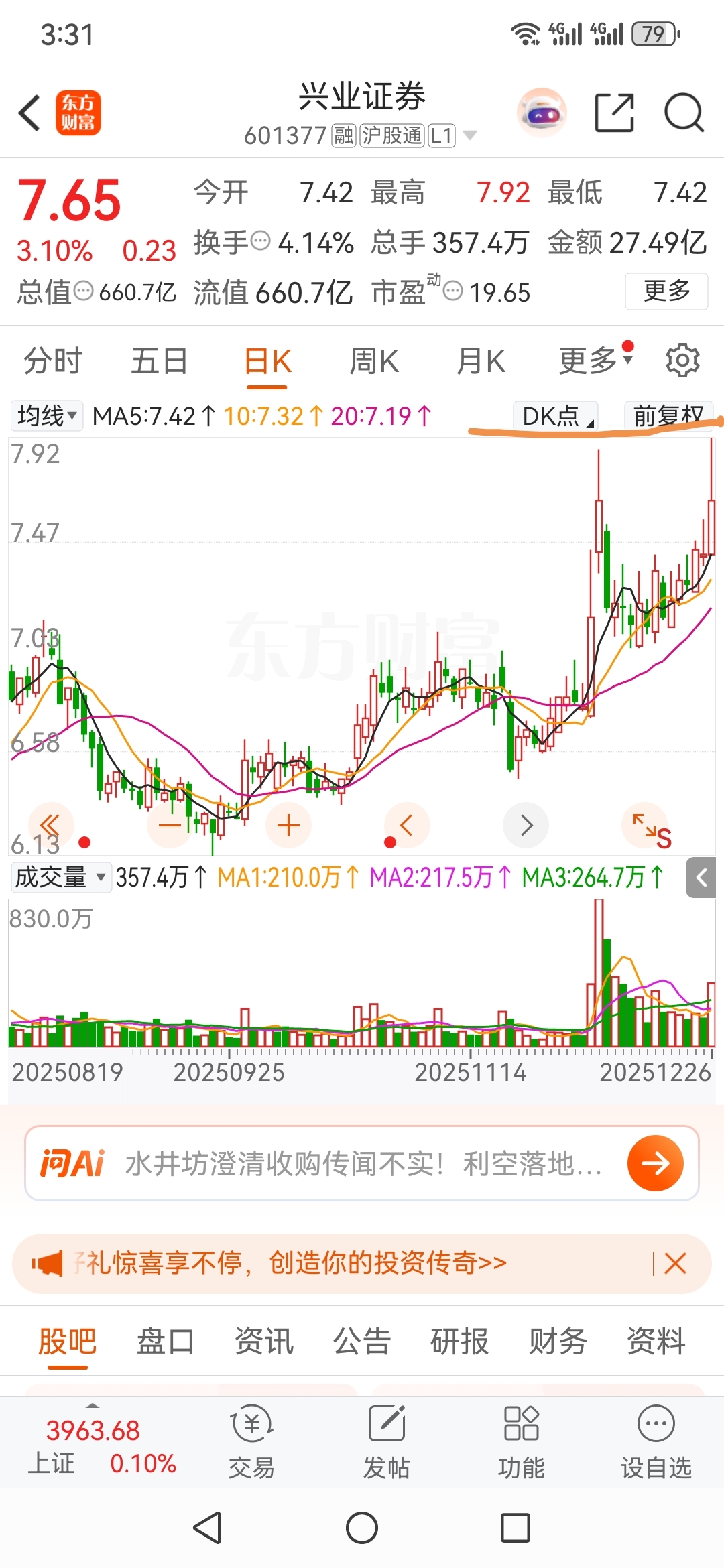 这个位置并非顶部,高了还有高,券商板块总体上稳中求进,业绩表现OK可以给股价兜底