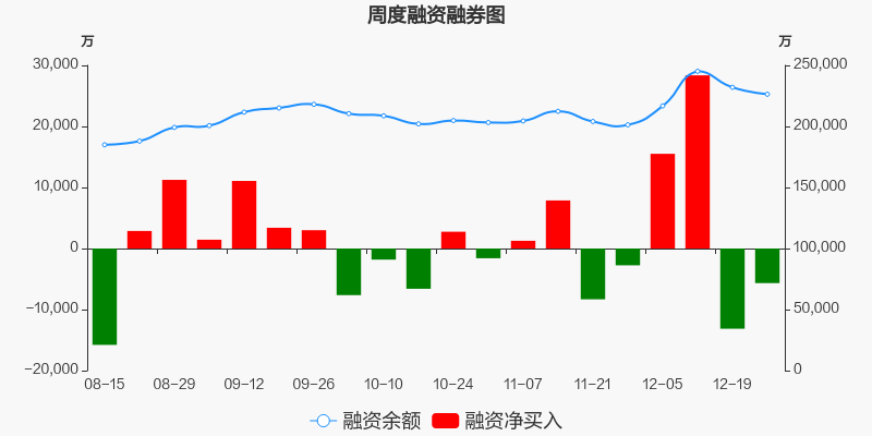 兴业证券本周(2025/12/22-2025/12/26)累计涨幅达5.96%,截至12月26日最新股价报收7.65元。从增量上来看,12月22日至12月26日融资买入交易规模11.6亿元,融资偿还规模12.16亿元,期内融资净偿还5664.37万元。从存量上来看,截止12月28日,兴业证券融资融券余额22.72亿元,其中融资余额规模22.64亿元,融券余额规模817.33万元。