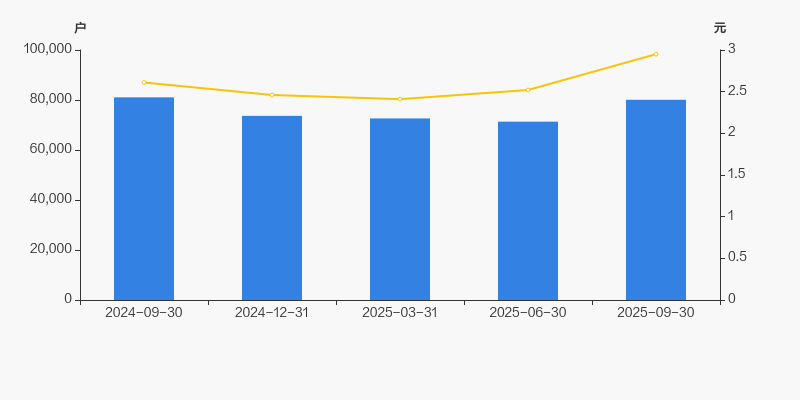 2024年9月30日至今,公司股东户数有所下降,区间跌幅为1.21%。2024年9月30日至2025年9月30日区间股价上涨13.03%。