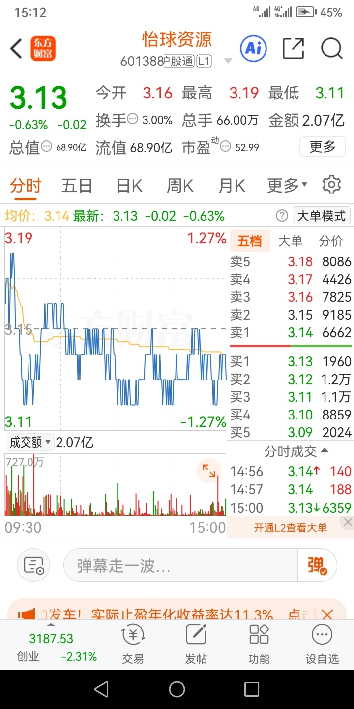 $怡球资源(SH601388)$ 尾盘大肆出货星期一还得跌!