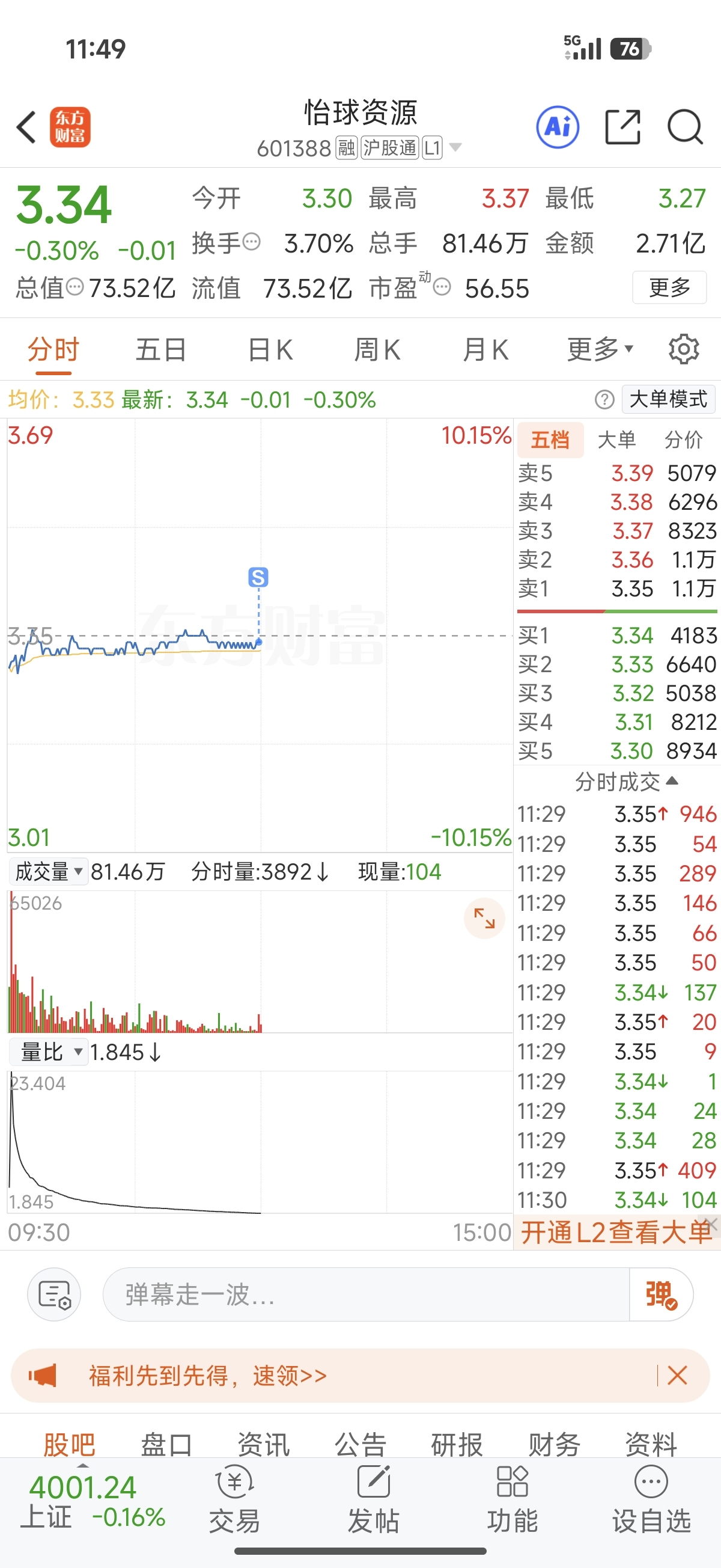 $怡球资源(SH601388)$ 不打算拿长线,可以走了