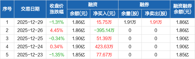 怡球资源:融资净买入15.75万元,融资余额1.86亿元(12-29)
