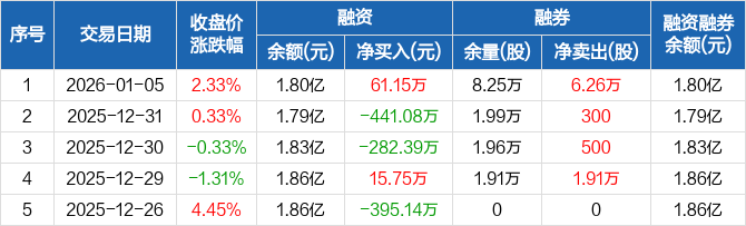 怡球资源:融资净买入61.15万元,融资余额1.8亿元(01-05)