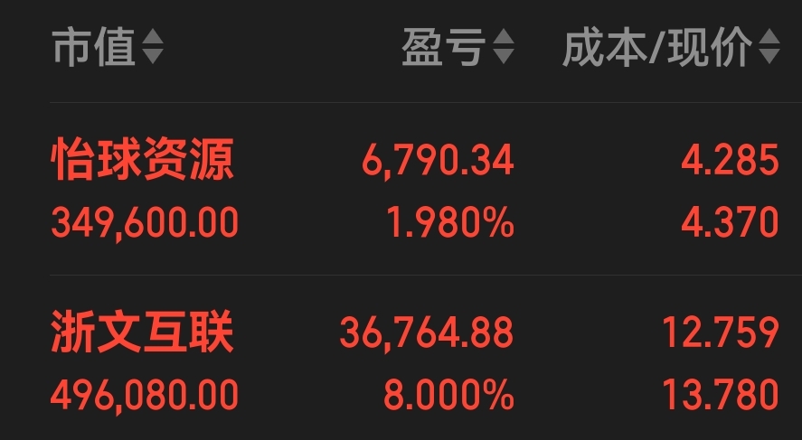 新仓:怡球资源。锁仓:浙文互联。———————声明:以上仅作为个人实战记录,本人