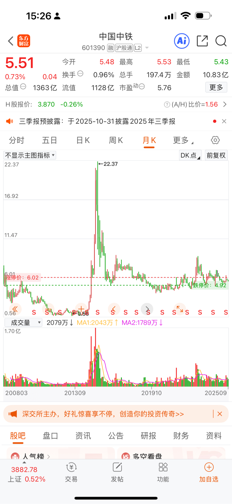 $中国中铁(SH601390)$ 每股净资产12元,市盈率5.76,14年10月开始起爆!25年会不会接力10年前?