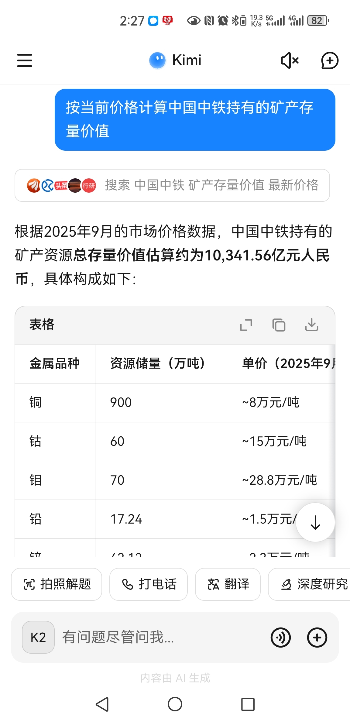 $中国中铁(SH601390)$ 有价值万亿的总储量矿产主要是铜