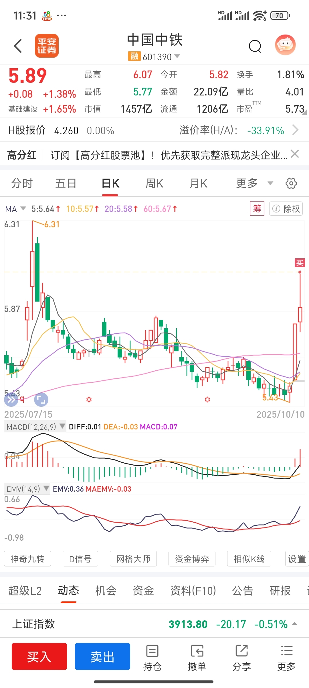 $中国中铁(SH601390)$ 我就是股神,主力就盯着我这点钱