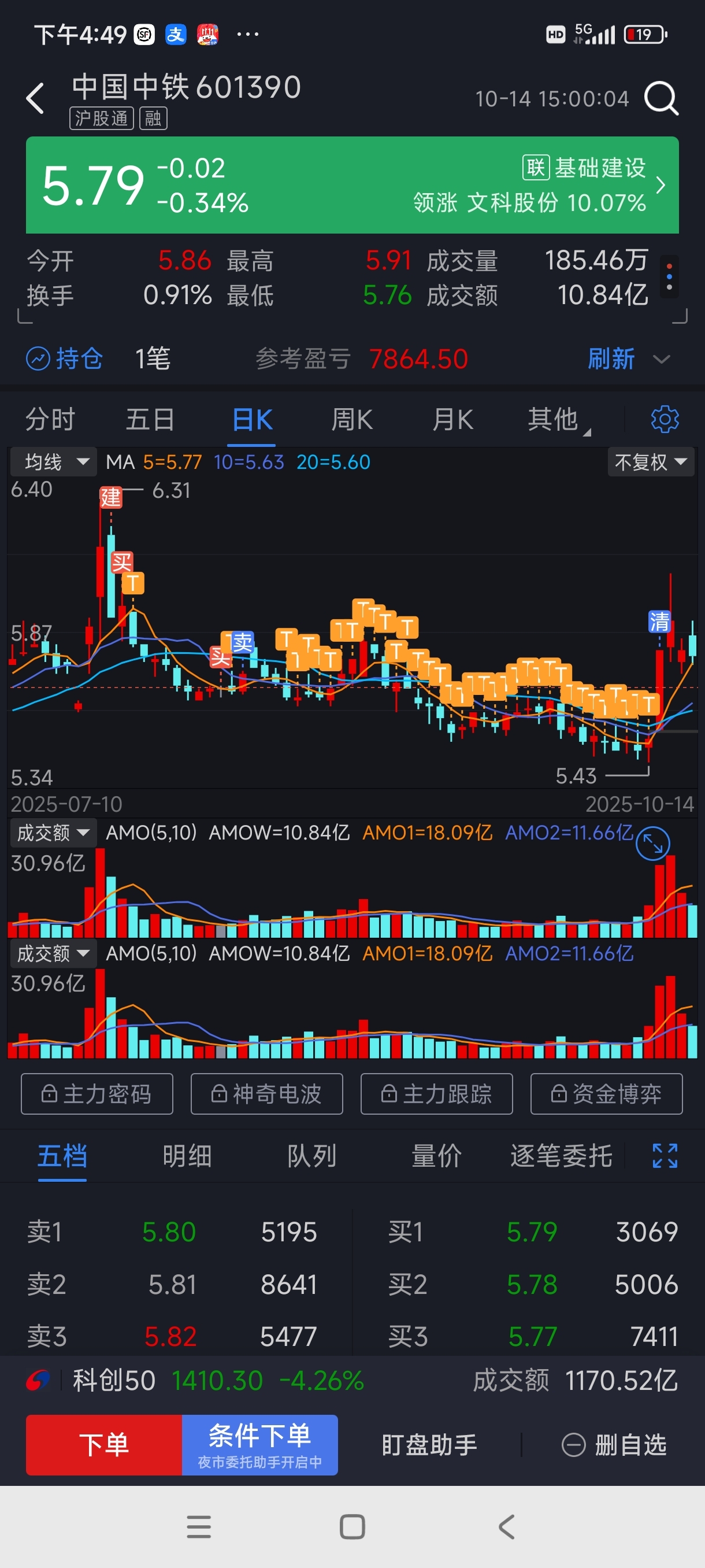 $中国中铁(SH601390)$ 昨天请仓走了,投了30多万一直苦熬,赚了七千多块钱走了,明天继续一分分建仓!