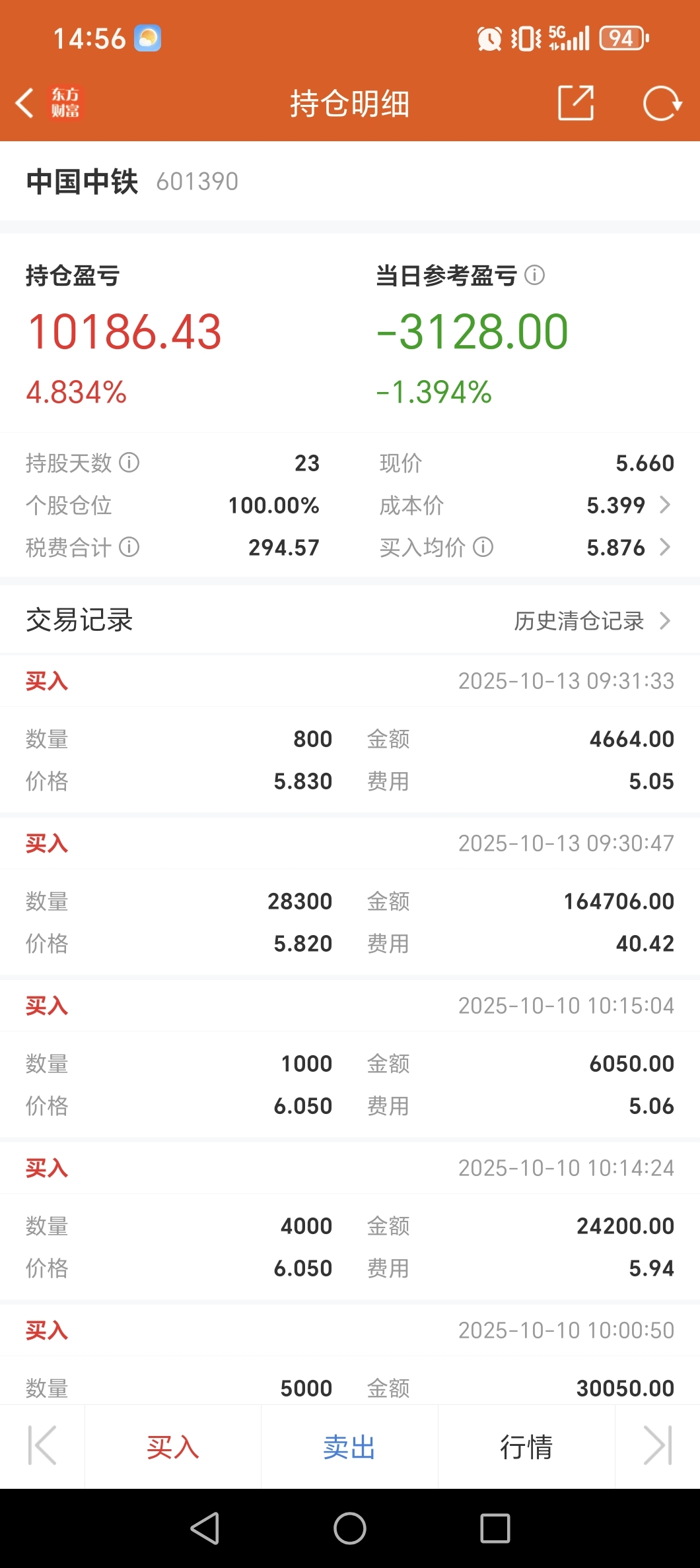 $中国中铁(SH601390)$ 持股中铁第23天,跌就跌呗目标是追上净值,冲