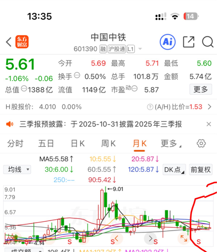 $中国中铁(SH601390)$ 月线7月11月从天而降的掌法,佩服