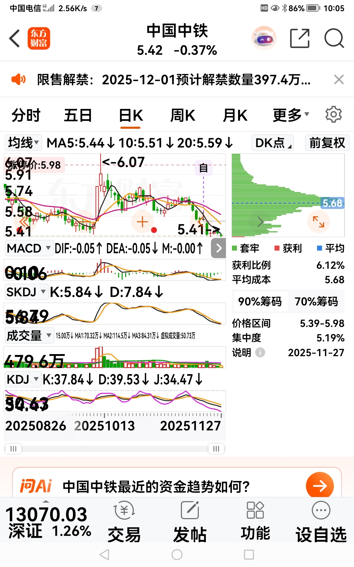 $中国中铁(SH601390)$ 套牢就是高价买入还没卖出去的,获利就是低价买入已卖出去的,平均值那自然是50%。我这么说对吗?