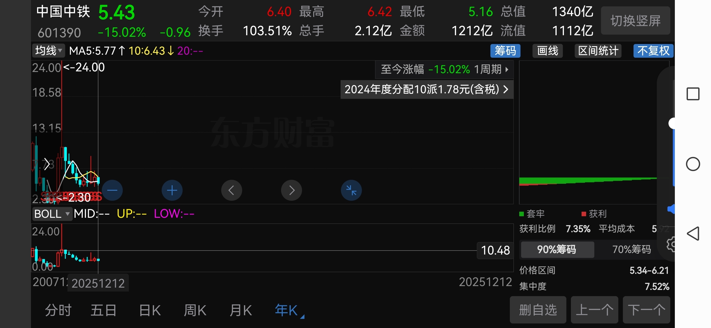 ,今年大盘都已经上4000点了,中国中铁今年到今天为止,竟然跌了15.02%,神