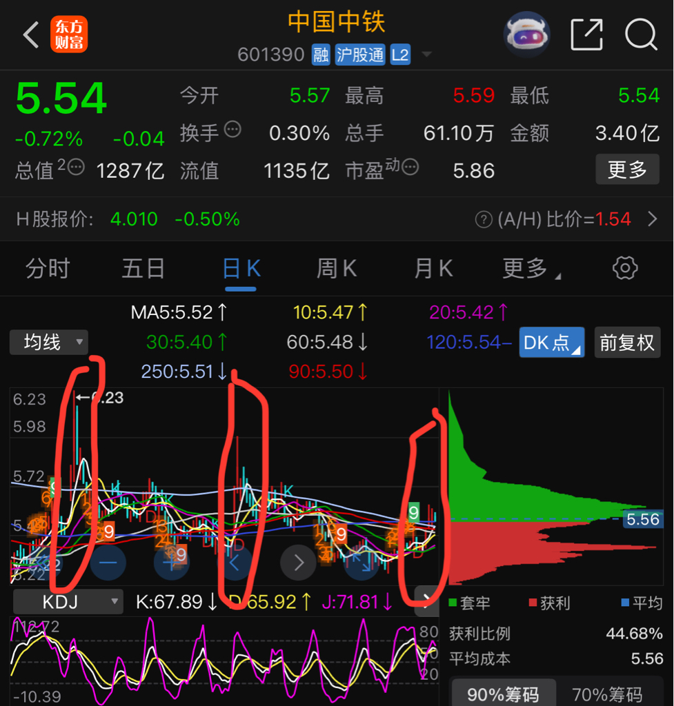 陪着中铁走了这么多年,我是一点也不相信到了压力位中铁能过去,99%都是下跌回调,