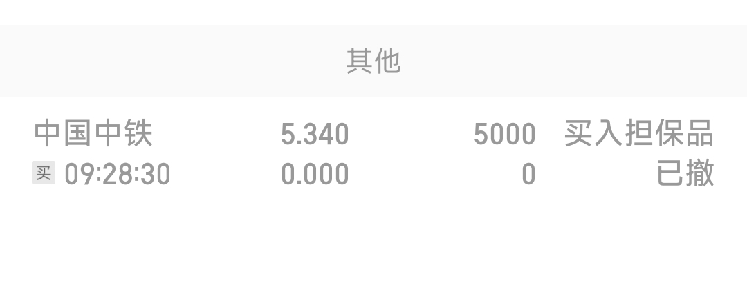 $中国中铁(SH601390)$ 麻蛋的,今天刚刚转钱进来补仓,开盘没买到。苟朱莉!
