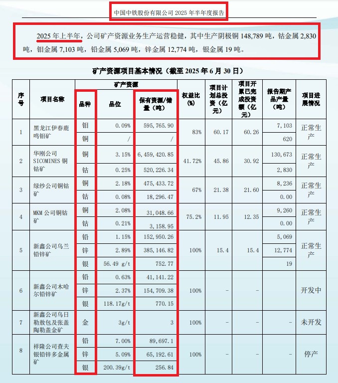 2025半年报:中国中铁拥有矿产资源情况!