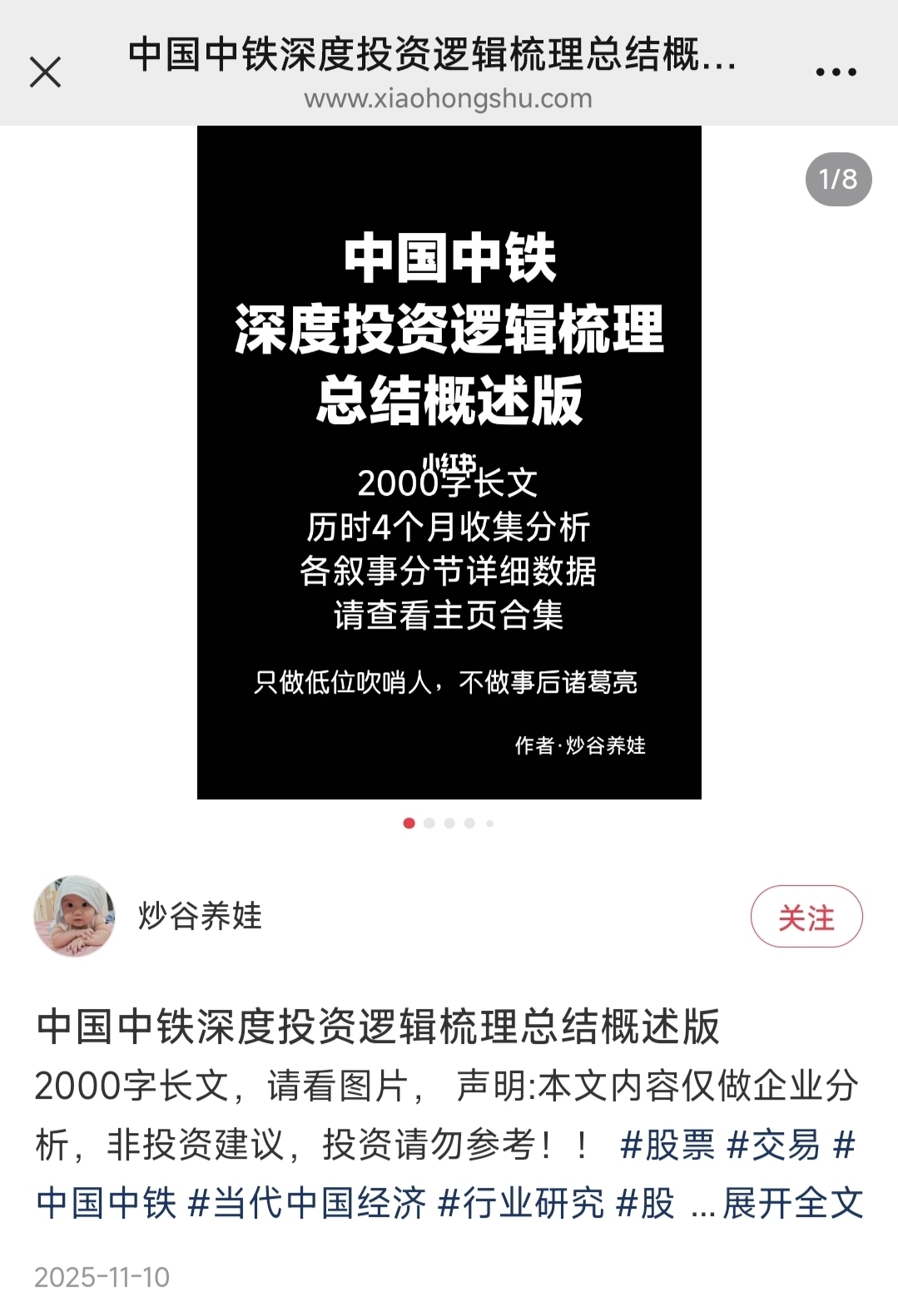 $中国中铁(SH601390)$ 中国中铁所有的解读,炒谷养娃已经连续做了三个月的报告,从基本面到叙事,然后总结,再到持有的心里建设弄得完完整整,清清楚楚,这才是真v必须顶