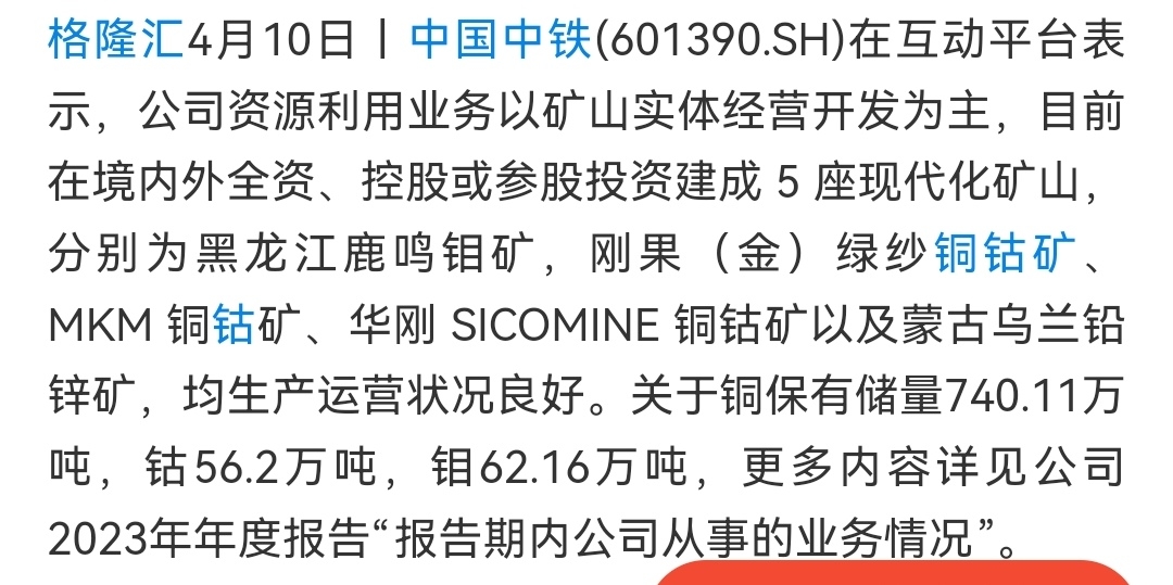 $中国中铁(SH601390)$ 我只相信公司回复的