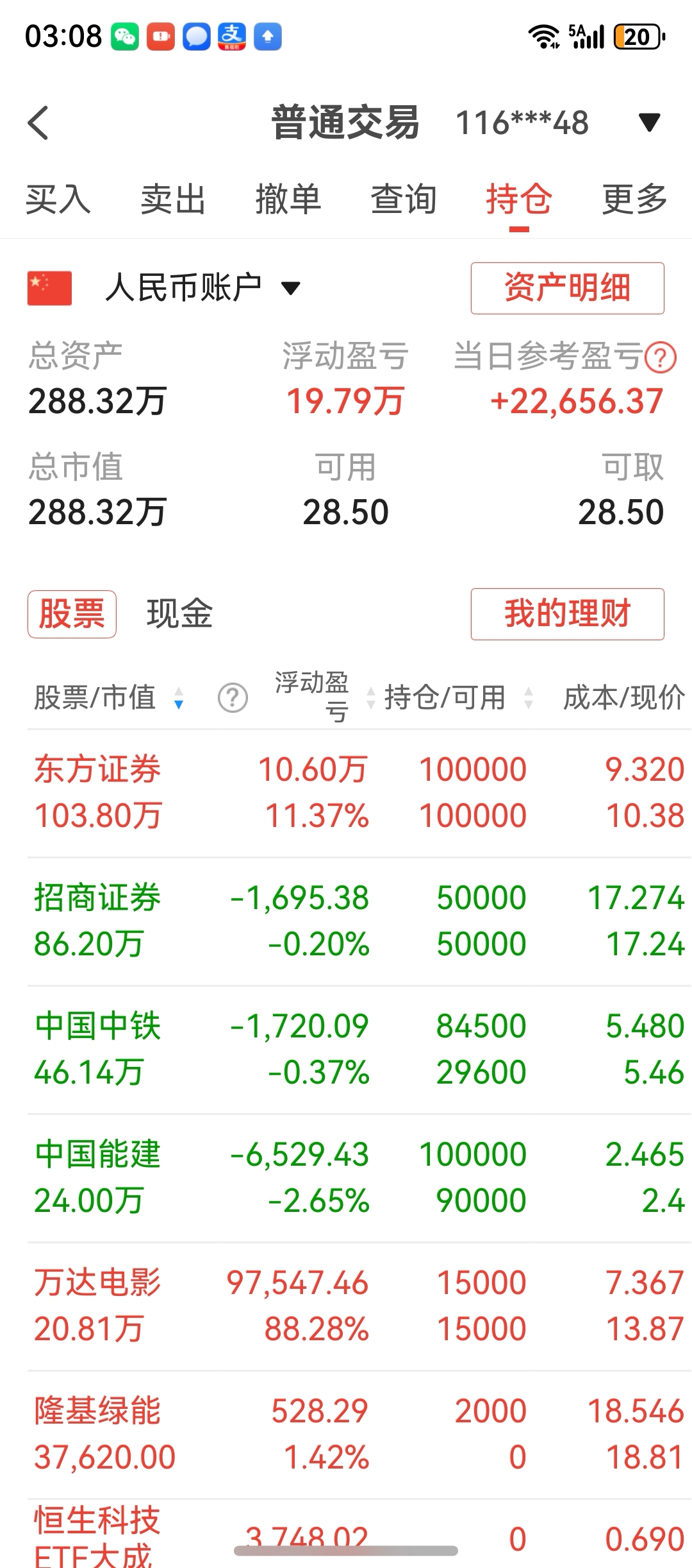 今天大幅度砍仓万达再次重仓老登!希望明天给个甜枣过年!不贪只要你2万就中