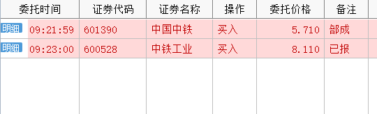 中国中铁被拉高,中铁工业集合竞价还好,也低价委托了中铁工业。