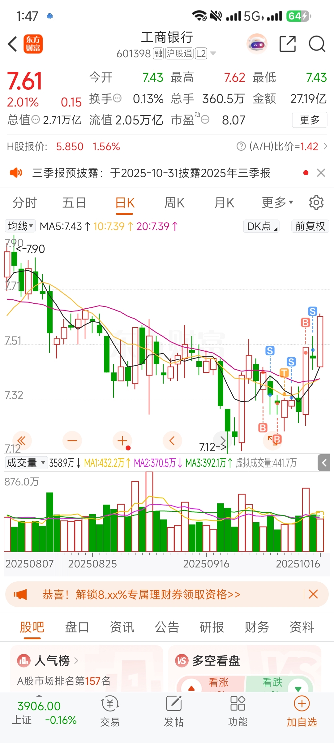 $工商银行(SH601398)$